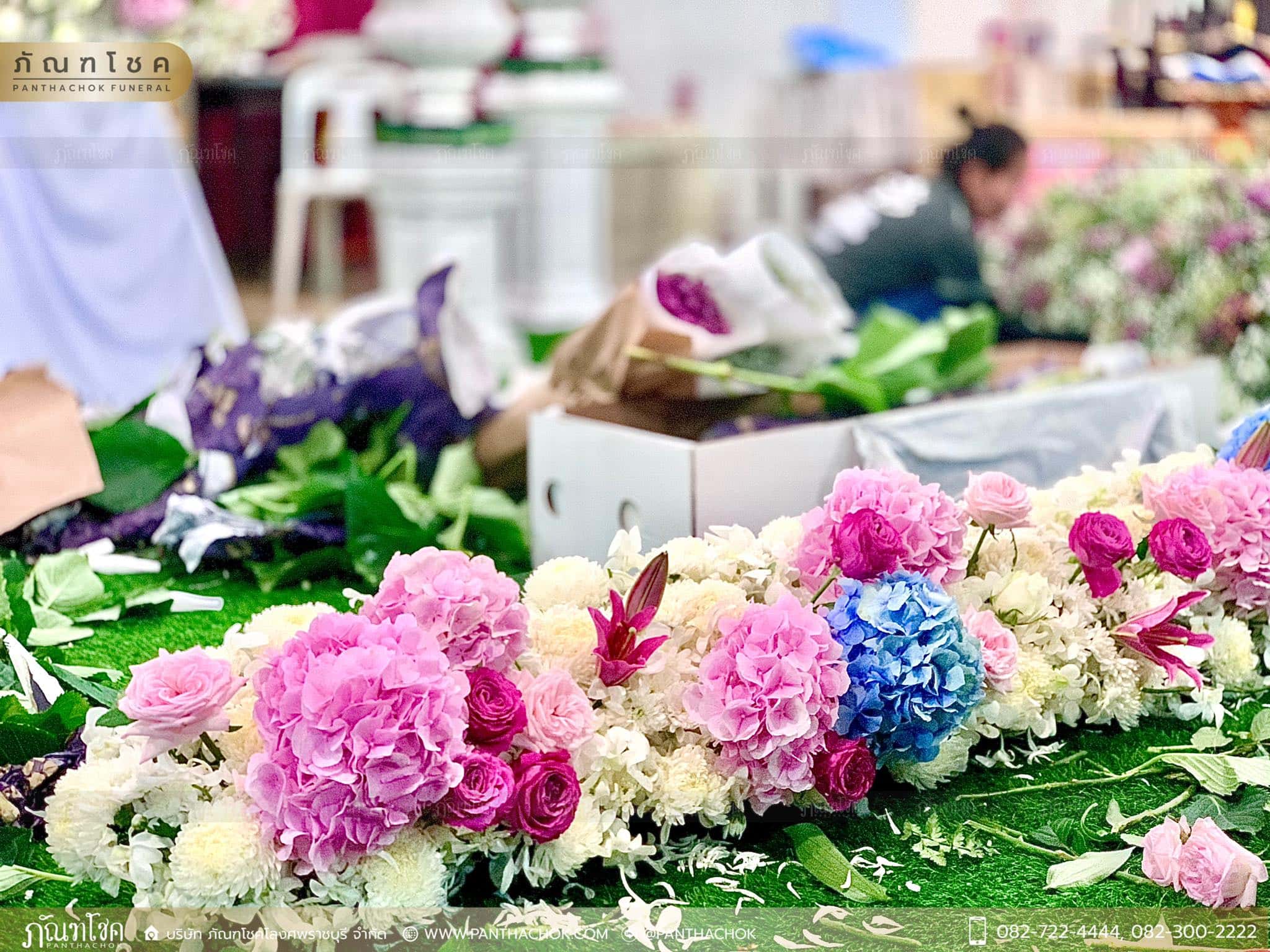 ดอกไม้งานศพคุณภาพระดับพรีเมียร์ ทั้งพุ่มดอกไม้ โกศพระราชทาน นกยูงหรูหรา ดอกไม้หน้าเมรุ และอื่นๆ