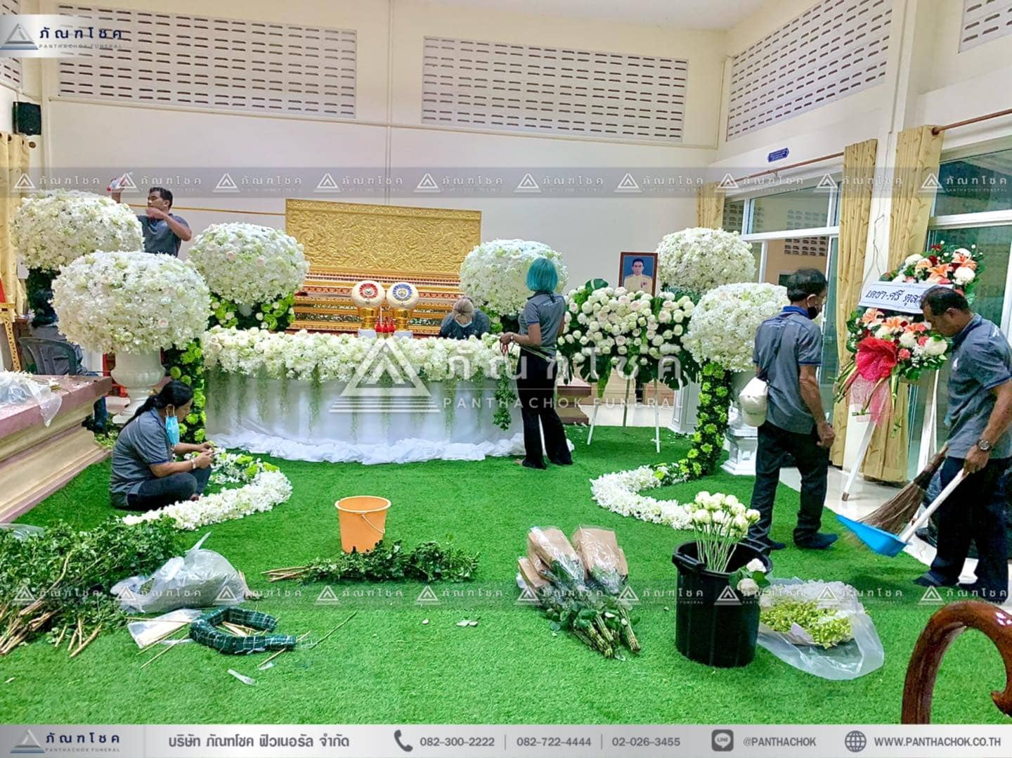 ดอกไม้สดงานศพสีขาว ช่วยให้ภายในงานศพมีความบริสุทธิ์ อ่อนโยน เมื่อรวมเข้ากับดอกไม้สดประดับหน้าหีบศพที่ทีมงานบรรจงจัดวาง ออกแบบดอกไม้งานศพอย่างใส่ใจ เพื่อให้ออกมาเป็นภาพความทรงจำที่ครั้งสุดท้ายที่สวยงาม แวดล้อมไปด้วยดอกไม้นานาชนิด ที่เบ่งบาน ให้ตราตรึงประทับอยู่ในความทรงจำของครอบครัวของผู้วายชนม์และผู้ร่วมงานไปตราบนานเท่านาน