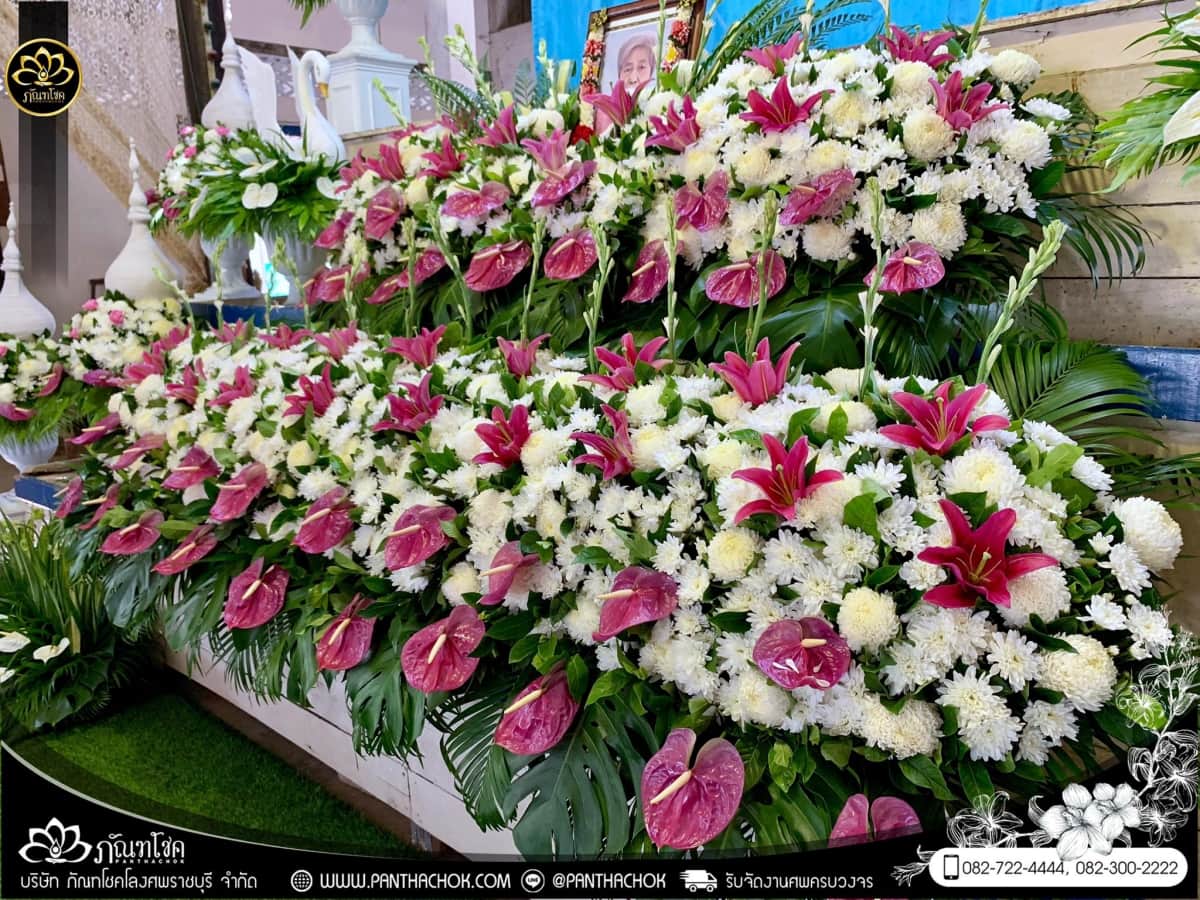 หีบศพลายไม้สักพร้อมดอกไม้